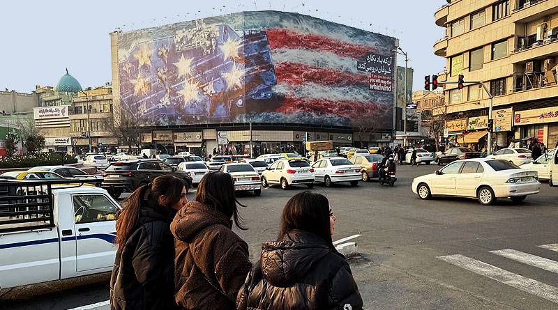 तेहरान के एंगेलाब स्क्वायर पर विशाल भित्तिचित्र लगाकर ईरान ने अमेरिका को दी सीधी चेतावनी