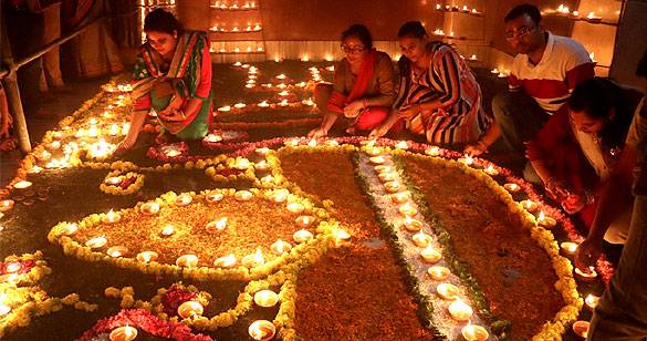 श्रीकृष्ण जन्मस्थान पर दीपदान व रंगोली के संग धूमधाम से मनाई गई दीपावली