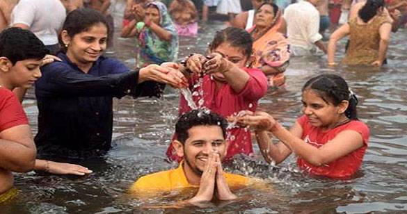 मथुरा में भाईदूज पर भाई और बहन ने एक साथ किया यमुना स्नान