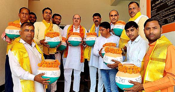 मेरी माटी मेरा देश अभियान के तहत भाजपा कार्यकर्ताओं ने निकाली कलश यात्रा