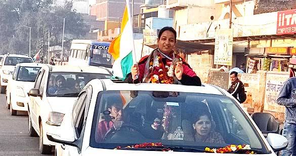 गोल्ड मेडल जीतकर मथुरा पहुंचीं भावना सिंह सिकरवार का भव्य स्वागत