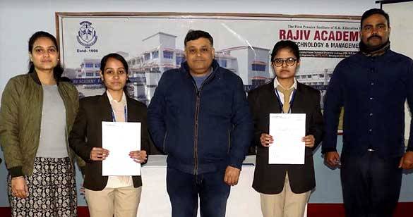 राजीव एकेडमी के पांच MBA विद्यार्थियों का उच्च पैकेज पर चयन