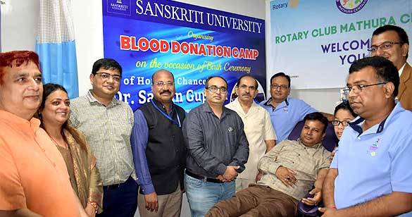 रक्तदान करके मनाया गया संस्कृति विवि के कुलाधिपति का जन्मदिन
