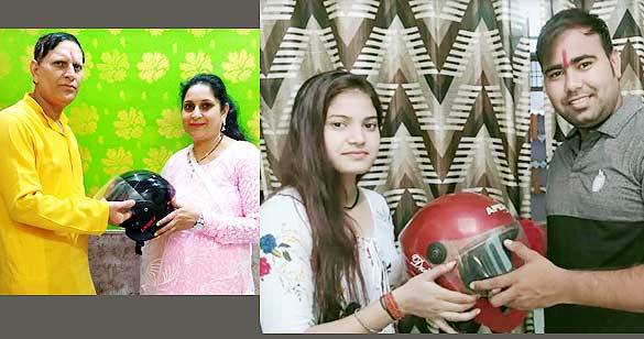 रक्षाबंधन के पर्व पर बहनों ने अपने भाइयों को सुरक्षा के लिए दिया हेलमेट