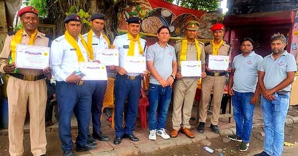 मुड़िया पूर्णिमा पर ड्यूटी संभालने वाले यातायात पुलिसकर्मी सम्मानित
