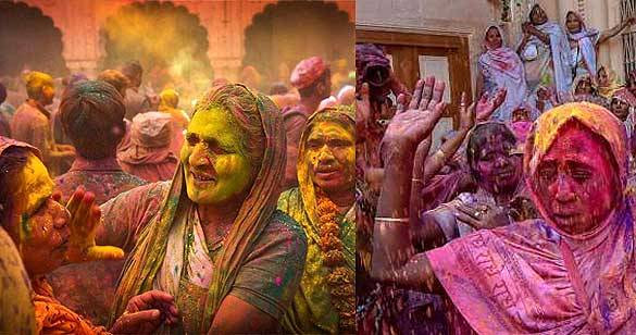 वृंदावन में आज विधवा माताओं की होली से सराबोर हुआ राधा गोपीनाथ मंदिर