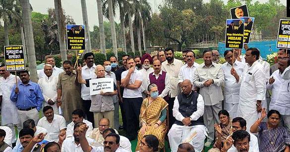 अडानी मुद्दे पर संसद परिसर में विपक्षी दलों ने किया विरोध प्रदर्शन, सोनिया भी शामिल