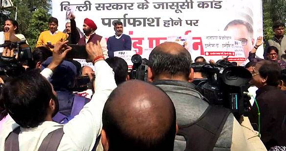 दिल्ली: फीडबैक यूनिट को लेकर भाजपा का सीएम केजरीवाल के घर पर प्रदर्शन