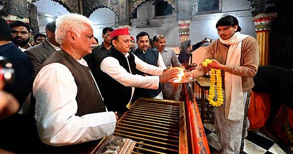 संकट मोचन हनुमान मंदिर पहुंचे अखिलेश तो लोगों ने लगा दी सवालों की झड़ी