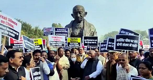चीन पर चर्चा की मांग को लेकर संसद में विपक्षी दलों का विरोध प्रदर्शन