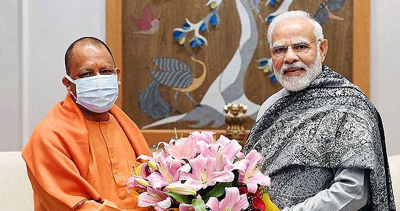 कोविड प्रोटोकाल का पालन करते हुए पीएम मोदी से मिले सीएम योगी