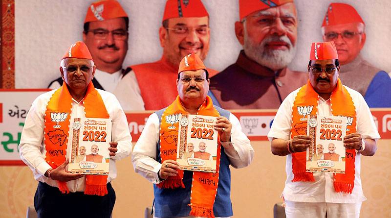 गुजरात चुनाव: गांधीनगर में बीजेपी ने जारी किया पार्टी का संकल्प पत्र