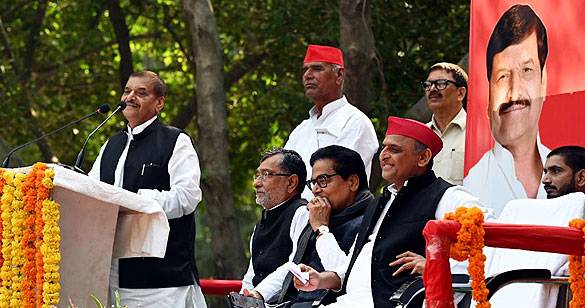 मैनपुरी उपचुनाव: फिर एक साथ मंच पर नजर आए शिवपाल और अखिलेश