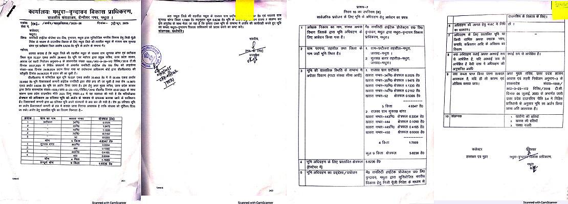सनसिटी अनंतम को डेवलप कराने के अथक प्रयासों में अधिकारियों की दलाल वाली भूमिका का खुलासा उस पत्र द्वारा होता है जो MVDA के तत्कालीन उपाध्यक्ष श्याम बहादुर सिंह के हस्ताक्षर से 28 जून 2025 को जिलाधिकारी मथुरा को लिखा गया है और जिसमें डीएम के समक्ष 5.8236 हेक्टेयर भूमि के अधिग्रहण का प्रस्ताव रखा गया है।