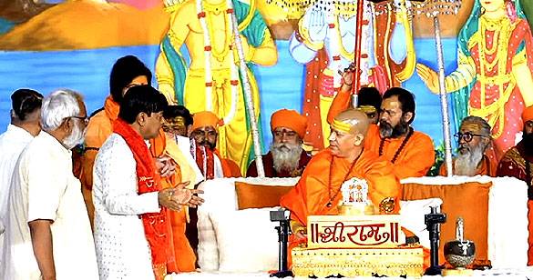 रामकथा मंच पर महेंद्र प्रताप ने कैलाशानंद गिरी से की श्री कृष्ण जन्मभूमि मुद्दे पर चर्चा
