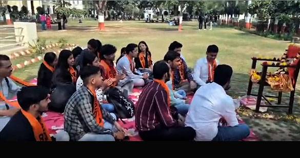 लाल बारादरी विवाद: लखनऊ विश्वविद्यालय में ABVP ने की हनुमान चालीसा