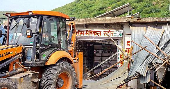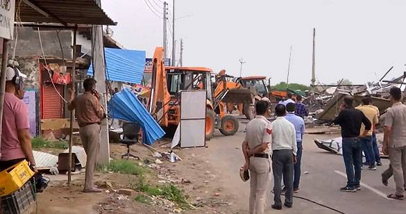 हरियाणा के नूंह में आज फिर चला बुलडोजर, 45 अवैध दुकानें ध्वस्त