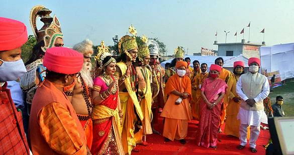 अयोध्या आगमन पर भगवान के स्वरूपों का राज्यपाल के साथ स्वागत किया सीएम ने