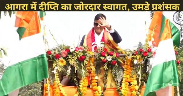 आगरा पहुंचीं विश्वकप चैंपियन दीप्ति शर्मा, 10 किमी लंबा रोड शो, जगह-जगह स्वागत