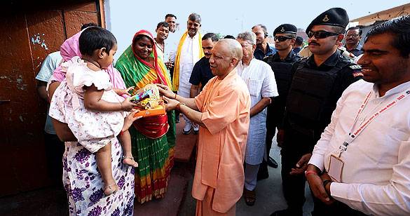 सीएम योगी ने अयोध्या के स्वच्छता कर्मियों की कॉलोनी में जाकर वितरित की मिठाई