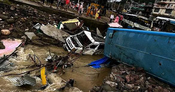 हिमाचल प्रदेश के मंडी जिले में भारी बारिश के कारण तबाही का मंजर