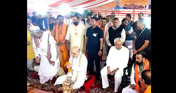 बिहार: अमित शाह ने किया जानकी मंदिर का भूमिपूजन, CM नीतीश ने किया अभिनंदन