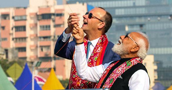 पीएम मोदी और जर्मन चांसलर फ्रेडरिक ने लिया अंतर्राष्ट्रीय पतंग महोत्सव में भाग