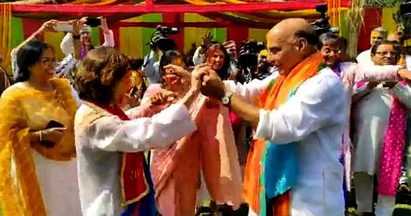 अमेरिकी वाणिज्य मंत्री के साथ होली पर डांस करते नजर आए रक्षामंत्री राजनाथ