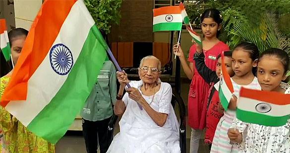 पीएम मोदी की मां हीराबेन ने गुजरात में बच्चों संग फहराया तिरंगा