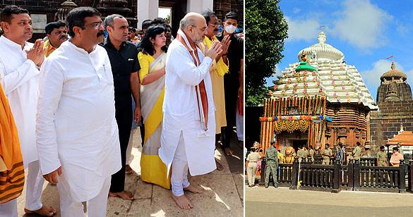 भुवनेश्वर पहुंचे अमित शाह और धर्मेंद्र प्रधान, लिंगराज मंदिर में किए दर्शन