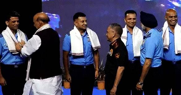 रक्षा मंत्री राजनाथ सिंह ने शुभांशु शुक्ला सहित 4 ग्रुप कैप्टन को किया सम्मानित