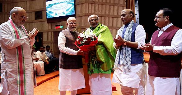 पीएम मोदी ने उपराष्ट्रपति पद के उम्मीदवार राधाकृष्णन को NDA सांसदों से मिलवाया