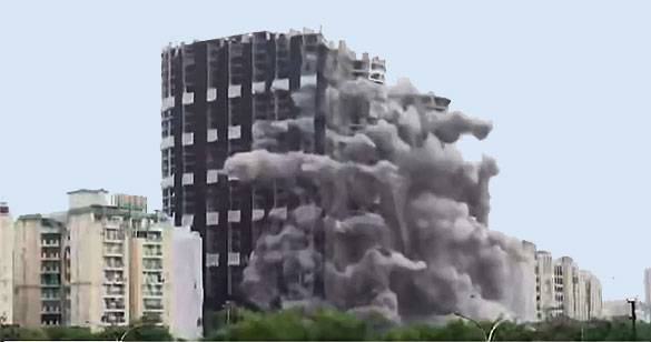 तय समय पर सुपरटेक ट्विन टावर में विस्फोट हुआ, कुछ ही सेकेंड में बिल्डिंग हुई जमींदोज