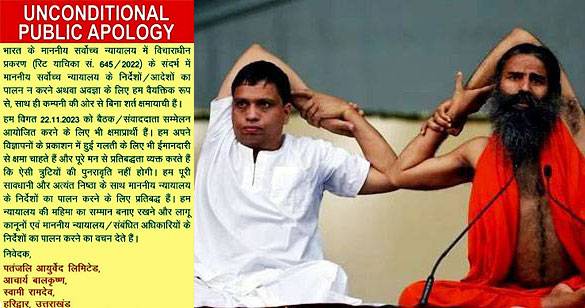 अखबारों के एक चौथाई पन्ने पर 'पतंजलि आयुर्वेद' ने फिर छपवाया माफीनामा