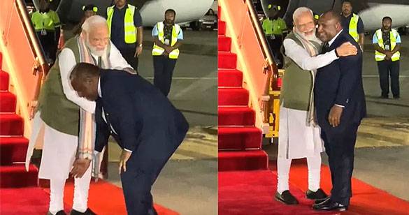 पापुआ न्यू गिनी में PM Modi का शानदार स्वागत, एयरपोर्ट पर PM मरापे ने छुए पैर