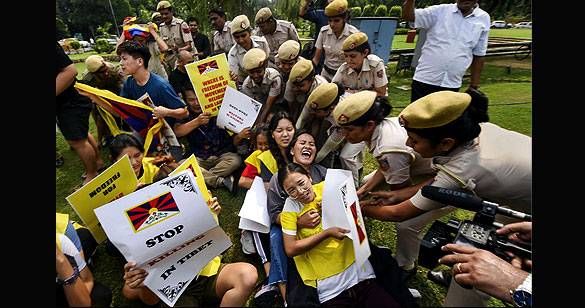 दिल्ली में चीनी दूतावास के बाहर आजादी के लिए तिब्बती युवाओं का प्रदर्शन