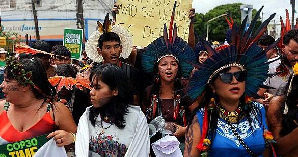 ब्राजील में चल रही जलवायु वार्ता के बीच फ्री द अमेजन के नारे, विरोध प्रदर्शन