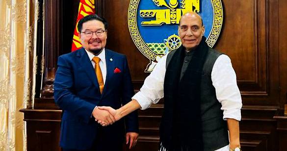 मंगोलिया के अपने समकक्ष से मिले रक्षा मंत्री राजनाथ सिंह
