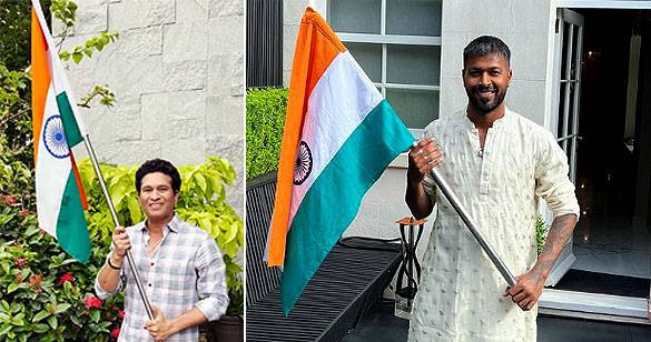 सचिन और हार्दिक सहित कई क्रिकेटर ने तिरंगा फहराकर दिया संदेश