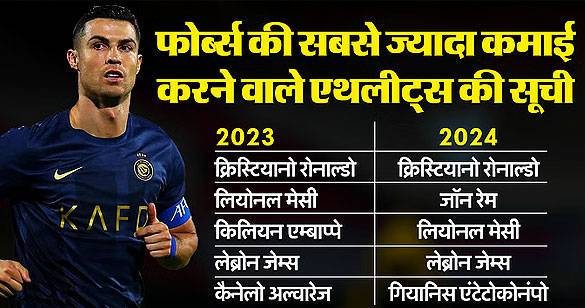 फोर्ब्स ने जारी की सबसे ज्यादा कमाई करने वाले शीर्ष 50 एथलीटों की सूची