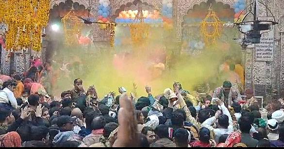 श्रीबाँकेबिहारीजी महाराज के मंदिर में मनाया बसंतपंचमी पर्व, जमकर बरसा अबीर गुलाल