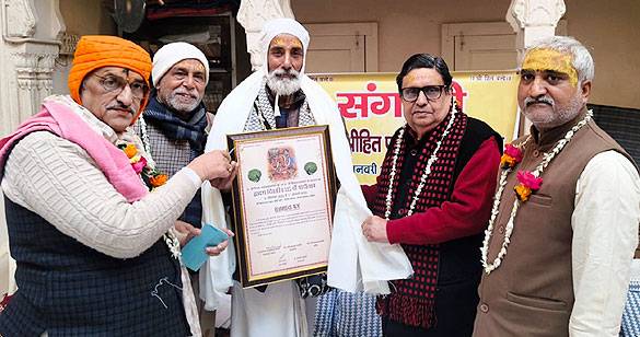 ब्रज भूमि कल्याण परिषद ने किया भागवताचार्य राम भजन शास्त्री व सन्तोष चतुर्वेदी का सम्मान