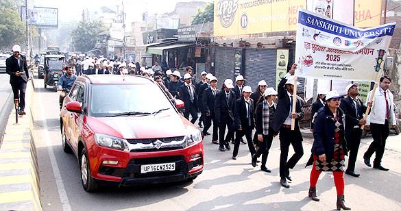 संस्कृति विवि की एनएसएस इकाई ने नेहरू युवा केंद्र संग निकाली यातायात जागरूकता रैली