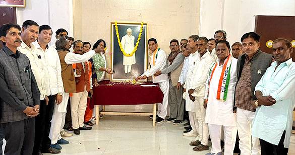जिला कांग्रेस कार्यालय पर पंडित जवाहरलाल नेहरू को दी पुष्पांजलि