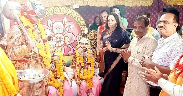 सांसद हेमामालिनी ने रामलीला में पहुंच किया स्वरूपों का पूजन, मंचन देख हुई मंत्रमुग्ध
