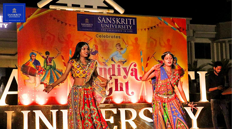 मथुरा: दशहरे के अवसर पर संस्कृति विवि में डांडिया नाइट, जमकर नाचे विद्यार्थी
