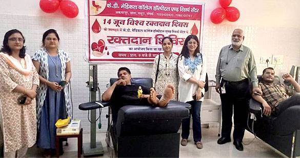 विश्व रक्तदान दिवस पर के. डी. हॉस्पिटल में रक्तदाताओं ने किया रक्तदान