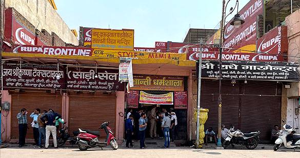 मथुरा पुलिस प्रशासन की मनमानी के विरोध में श्री कृष्ण जन्मभूमि का बाजार बंद, पसरा सन्नाटा