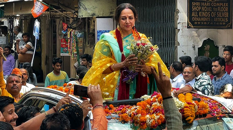 मथुरा भाजपा प्रत्याशी हेमा मालिनी ने किया रोड शो, जनता का आशीर्वाद मांगा