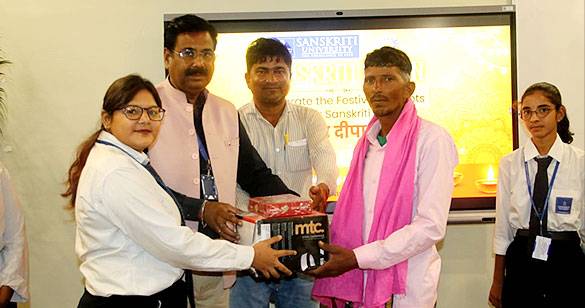 संस्कृति विश्वविद्यालय के विद्यार्थियों ने कामगारों को उपहार देकर मनाई दिवाली